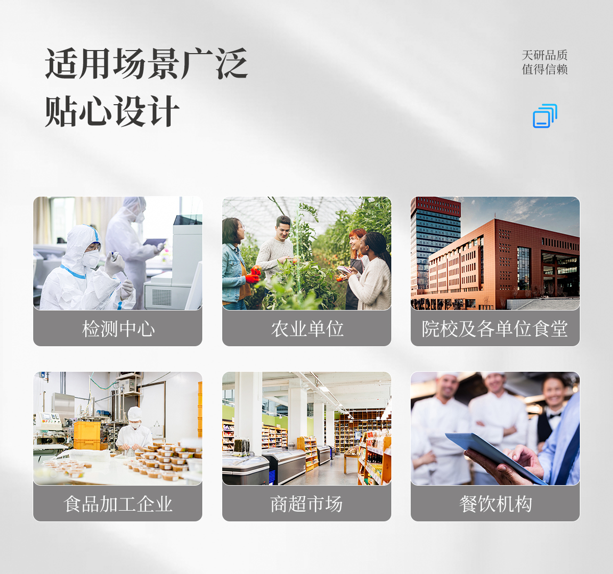 該食品重金屬檢測(cè)儀為集成化食品安全快速檢測(cè)分析設(shè)備,目前已于市場(chǎng)監(jiān)管局、糧食加工企業(yè)、學(xué)校食堂、超市、配送中心、衛(wèi)生部門、檢驗(yàn)檢疫部門等單位廣泛使用。