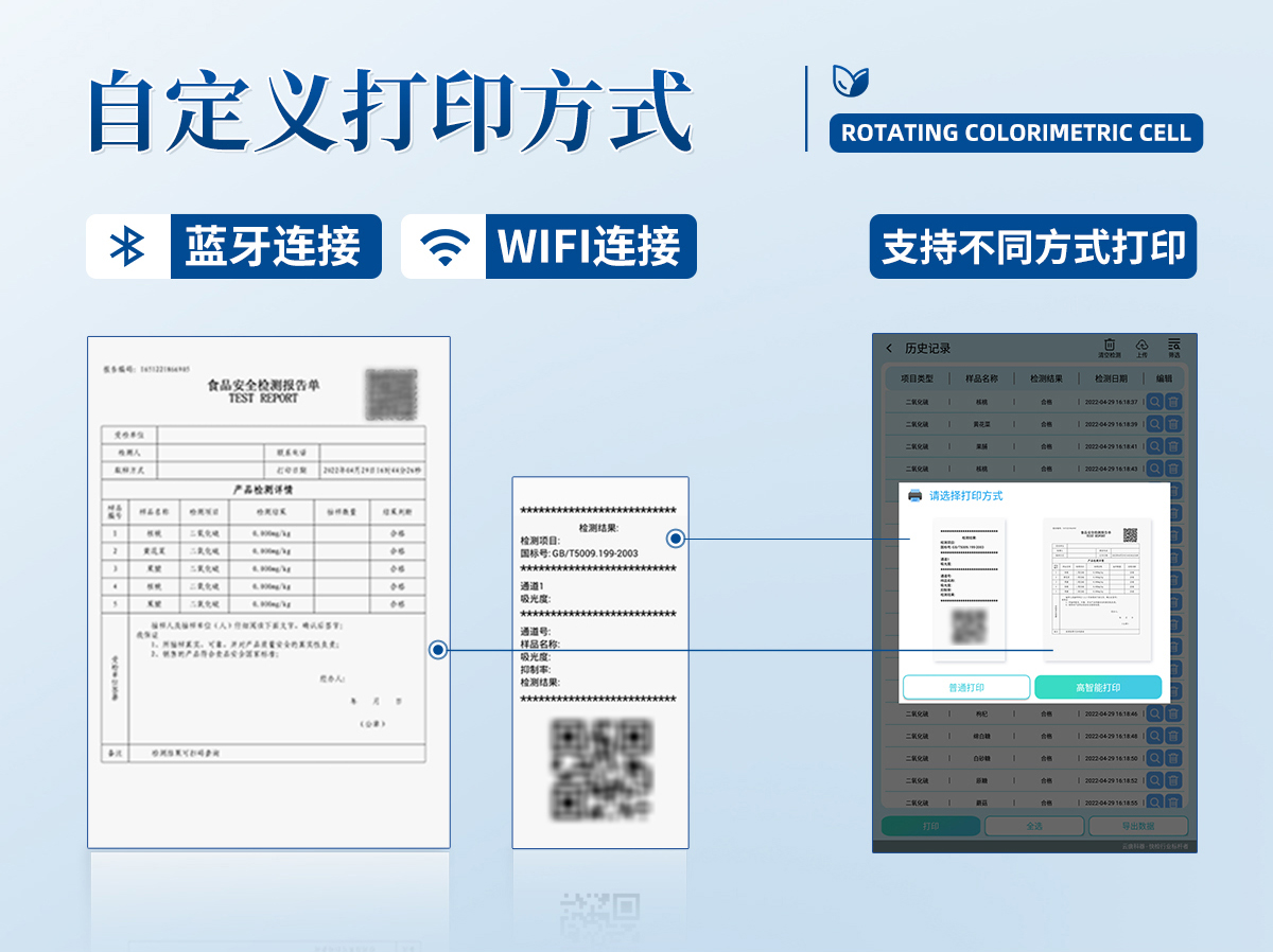儀器采用臺式一體化系統檢測技術,將分光光度模塊、膠體金檢測模塊、新型農殘檢測模塊、數字化管理模塊、無線通訊模塊高度集成于一體,支持檢測200種食品安全檢測項目,同時預留升級檢測方法。 儀器檢測模塊標準化、智能化,可隨意自由組合。檢測箱體內置多個標準檢測單元,檢測模塊可以調整配置。 顯示屏幕:儀器采用10.1英寸豎向液晶觸摸屏顯,搭配運行安卓智能操作系統,主控芯片采用ARM Cortex-A7,RK3288/4核處理器,主頻1.88Ghz,操作方便,性能更強。 檢測通道:≥24通道;采用精密旋轉比色池設計,使用同芯片同光源校準精度,解決不同光源之間的誤差值,更加準確**。(1-12通道間誤差0.1%,**號:ZL202022821055.2) 儀器光源:高精度進口四波長冷光源,每個通道均配置 410、520、590、630nm 波長光源,標配**的光路切換裝置,**光路切換功能可實現64波長,并且所有檢測項目可實現所有通道同時檢測。 設備可一鍵校準,自動保存校準數據,自動對比校驗,得到精準光源,采用Android SP存儲數據,光源數據永不丟失,方便每一次使用。 通訊接口:配備無線通信模塊、可選配4G(APN)通訊模塊和藍牙傳輸,同時具有雙USB接口以及RJ45網線接口,可以多方式實現數據保存及數據傳輸。 存儲方式:支持U盤存儲,標準USB接口,免驅動安裝。檢測結果存儲容量20萬條以上,可生成Excel表格進行拷貝,并具有登錄保護功能。 智能化操作系統: 1、操作系統:儀器可在同一檢測界面自動對應相關檢測通道,一次性選擇1-12個樣品名稱,無需退出界面,節省操作時間。并可以對每個通道屬性和樣品信息單獨進行編輯,例如送檢單位、人員,檢測人員等,打印時勾選打印顯示。 2、數據集成系統:設備首頁自動匯總分析檢測數據,包含:周檢測數據、月檢測數據,總檢測數量,均包含檢測總數,合格數,不合格數,以及相關柱形分析圖,各項檢測數據一目了然,無需電腦查詢,更加快捷直觀。 3、數據庫系統:十幾項數據庫分類管理儀器:包含項目類型、項目數據、檢測數據、歷史記錄、國標信息、曲線信息、采樣信息、檢測信息、受檢信息、復核信息、圖表信息、光源校準信息、打印樣式信息、樣品庫信息等等,數據庫之間互相協調聯動保證數據的真實完整性。同時產品數據庫以及歷史檢測記錄支持一鍵檢索功能。 4、限量規判系統:具有限量查詢、添加物質合規判定系統。檢測出結果后,系統自動調用系統數據庫中相關國標進行比對判定,客觀顯示判定結果是否合格。 5、項目預設系統:儀器具有任務預設模塊,一鍵提前預設,給出方便快捷的新檢測方案,每一個任務分別可以設置不同的樣品、批次、編號、來源、備注、抽樣信息、檢測信息、受檢信息、復核信息等更多信息。樣品送檢時一鍵調取保存信息,并可多次調取,大大提高檢測效率。 6、數據監管系統:同步對接監管平臺,數據可局域網和互聯網數據上傳,檢測結果可直接傳至食品安全監管平臺。進行區域食品安全監管及大數據分析處理與數據統計,監測區域食品安全長短期動態及問題預估、預警。 7、全新打印系統:內置全新打印機,新創自定義打印方式,可按需靈活勾選控制:產品合格證(國家農業部標準要求),二維碼,抽樣信息、檢測信息,受檢信息、復核信息、抽樣日期、檢測日期等信息的打印。 8、A4紙版本報告打印功能(可選配):設備擁有兩種結果展示方式,可以自動生成A4打印模板和小票打印模板兩種樣式,可通過WiFi及網線等方式鏈接外置打印機可進行打印。 供電模式:儀器交直流兩用,直流12V供電,可連接車載電源,可配6ah大容量充電鋰電池,電量可實時顯示,方便戶外流動測試。 膠體金檢測模塊:采用雙通道CMOS成像處理技術及膠體金免疫層析技術,可同時讀取雙膠體金卡數據,自動采集、處理分析,將檢測結果顯示,并可根據參考限值自動判斷檢測結果,可檢測常見的獸藥殘留、生物毒素、抗生素、違禁添加物等。 1、探測技術:CMOS成像探測; 2、檢測通道:2通道,可同時讀取2個膠體金卡數據; 3、檢測方式:消線法和比色法; 4、顯示模式:陰性或陽性; 5、曲線形式:直插式掃描方式,顯示金標卡圖像,實時生成、識別CT曲線圖,無需手動調整,完成檢測后自動退出檢測卡。兼容市場上其他金標卡,使用耗材不受限制。 儀器具備遠程升級功能,可定向分客戶分儀器更新,開機后自動更新,并可持續性免費更新系統版本,無需像傳統產品返廠更新,節省時間及人力成本并避免了物流運輸返廠升級導致設備損壞的潛在風險。