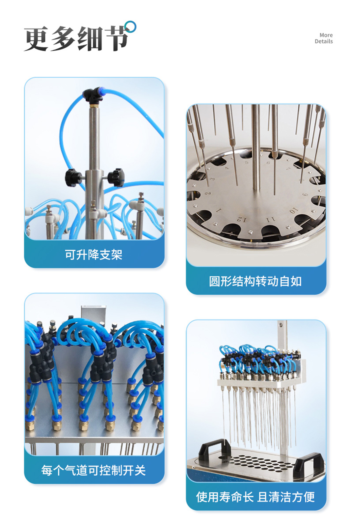 產(chǎn)品詳情:檢測(cè)項(xiàng)目: 水浴氮吹儀采用吹掃捕集技術(shù),同時(shí)可對(duì)樣品進(jìn)行控溫加熱,利用氮?dú)獾榷栊詺怏w快速、可控、連續(xù)地吹到樣品表面來達(dá)到樣品溶液快速無氧濃縮。該方法具有省時(shí)、便捷、準(zhǔn)確的特點(diǎn)。廣泛用于食品安全、醫(yī)藥、農(nóng)藥殘留檢測(cè)、臨床藥代等領(lǐng)域。 產(chǎn)品特點(diǎn):