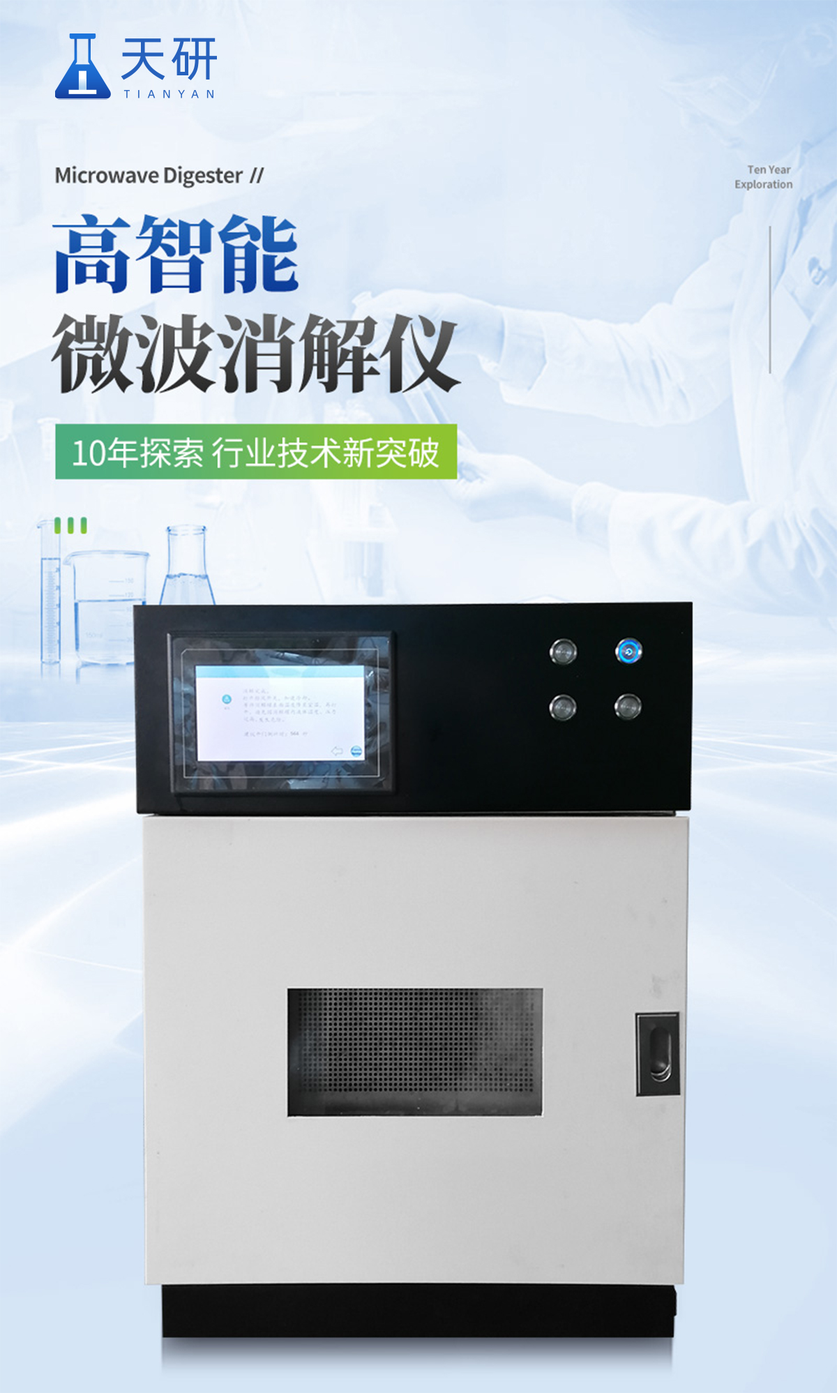 TY-WB20高通量智能微波消解儀為樣品提供了快速,安全,自動化的解決方案,在高壓條件下加快樣品消解反應的速度,廣泛應用于食品、環境保護、疾病控制、質量監督、商品檢驗、科研院所等領域。