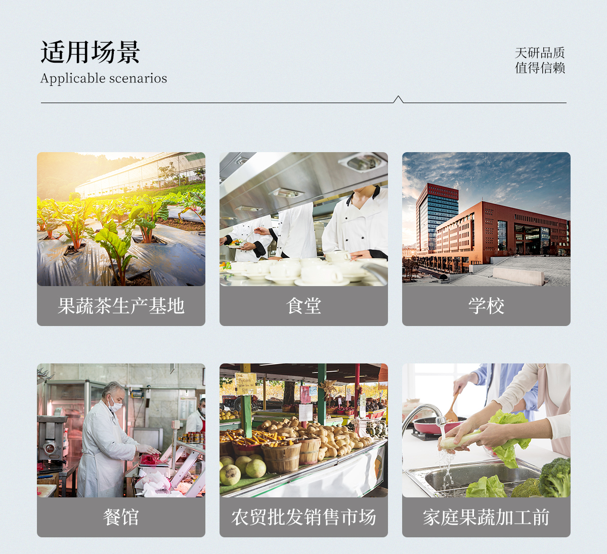 廣泛應用于主要用于蔬菜、水果、茶葉、糧食、農副產品等食品中有機磷和氨基甲酸酯類農藥殘留的快速檢測;此外還可用于果蔬茶生產基地和農貿批發銷售市場現場檢測,餐館、學校、食堂、家庭果蔬加工前的安全速測等。