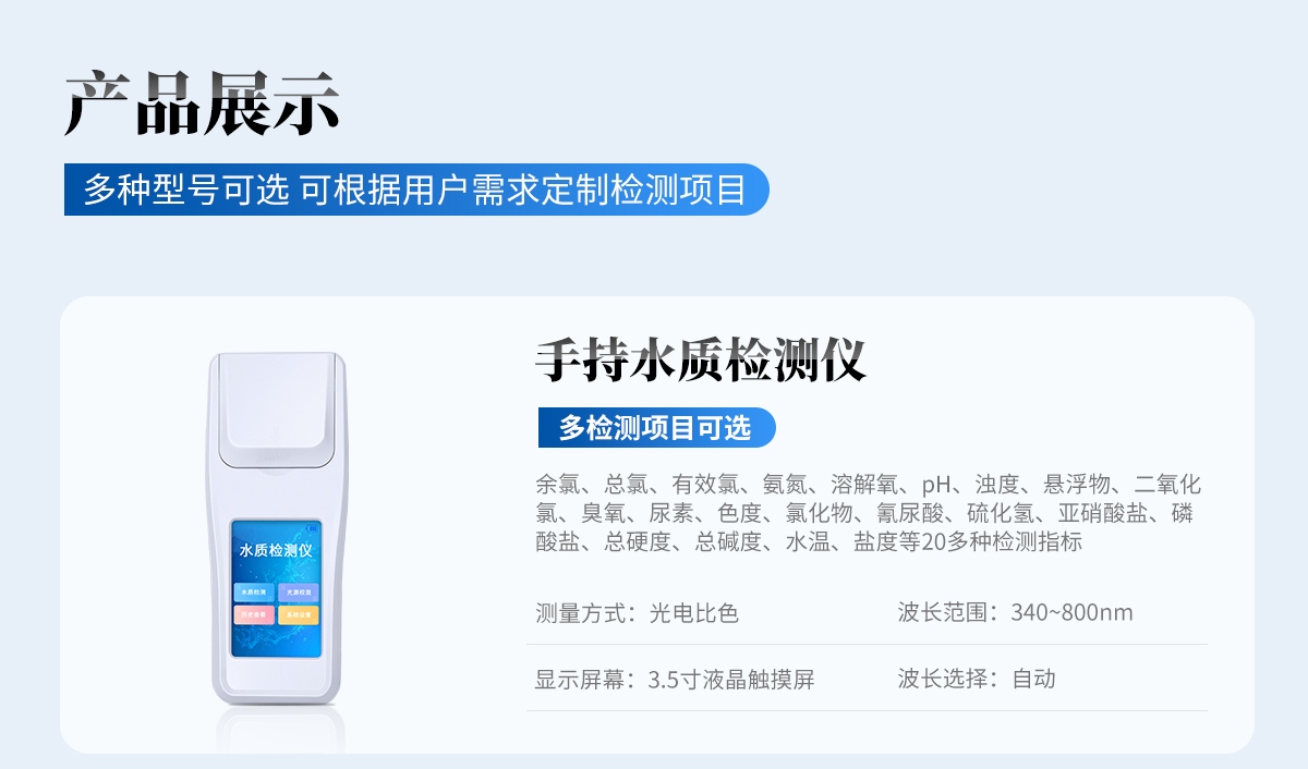 適用于純凈水廠、自來水廠、生活污水處理廠、工業污水、水產養殖、河流監測、游泳場館、水源保護、生產監測、科研實驗等。