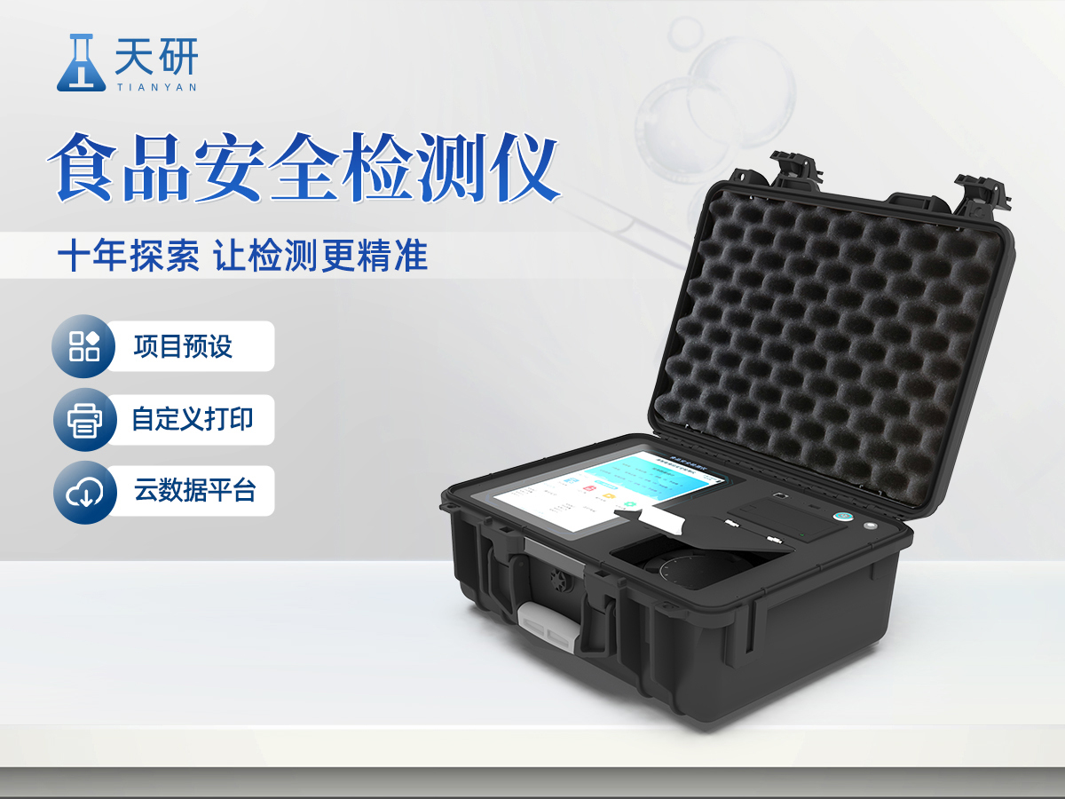 產(chǎn)品詳情:產(chǎn)品介紹: 山東天研儀器有限公司生產(chǎn)的高智能食品安全檢測(cè)儀為集成化食品安全快速檢測(cè)分析設(shè)備,采用臺(tái)式一體化設(shè)計(jì),可快速檢測(cè)200多種食品安全項(xiàng)目,包含非食用化學(xué)物質(zhì)、濫用食品添加劑、農(nóng)藥殘留、獸藥殘留、重金屬、病害肉、營(yíng)養(yǎng)強(qiáng)化劑、抗生素類(lèi)殘留、激素類(lèi)殘留、真菌毒素類(lèi)殘留、化學(xué)類(lèi)殘留等