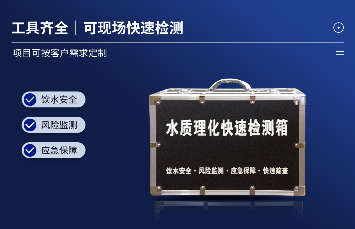 產(chǎn)品詳情:檢測箱預裝輔助設備:0.1~1.0mL可調式移液器1把,移液頭50支,計算器1個,多功能剪刀1把,試管架1個,30ml采樣器1個,30ml采樣罐10個,樣品杯70個,一次性滴管30支,鑷子2把,量尺1把,小刀1把,PH試紙1包,封口膜1袋,記號筆2支。說明:預裝輔助設備為打包產(chǎn)品,不拆購,其他項目可增減。產(chǎn)品編號品名規(guī)格單位數(shù)量S101水質理化檢測ABS鋁合